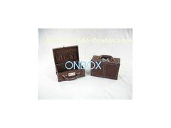 a. MDF box in luxury brown faux suade exterior with handle ;